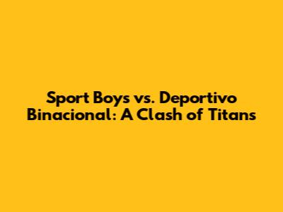Hey sports fans! Get ready for a thrilling showdown as Sport Boys takes on Deportivo Binacional. This match is more than just a game; it's a battle of strategies, skills, and sheer determination. Let's dive deep into what makes this matchup so exciting and what we can expect when these two teams go head-to-head. We're going to break down everything from team strengths and weaknesses to key players and potential game-changing moments. So, grab your snacks, settle in, and let's get ready to analyze this fantastic clash in detail.