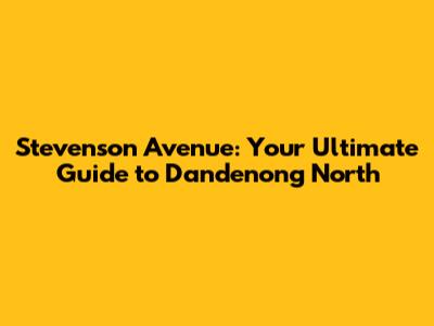 Hey guys! Welcome to your comprehensive guide to Stevenson Avenue in Dandenong North. Whether you're considering a move, planning a visit, or just curious about this vibrant pocket of Melbourne, you've come to the right place. We're going to dive deep into everything Stevenson Avenue has to offer, from its residential charm and convenient amenities to its community vibe and future potential. So, buckle up, grab a coffee (or a beer!), and let's explore this awesome street together. This detailed guide aims to provide you with all the essential information you need to understand and appreciate Stevenson Avenue, making it the perfect resource for anyone interested in the area.