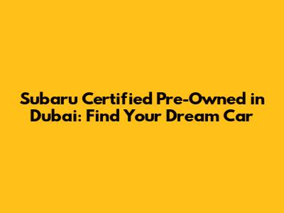 Are you searching for a reliable and affordable vehicle in Dubai? Look no further than a Subaru Certified Pre-Owned (CPO)! Getting your hands on a Subaru Certified Pre-Owned in Dubai is a smart move for those seeking peace of mind, quality assurance, and exceptional value. Let's dive into the world of Subaru CPO vehicles in Dubai and discover why they might just be the perfect fit for you.