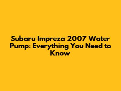 Hey everyone, if you're a proud owner of a Subaru Impreza 2007, chances are you'll eventually need to deal with the water pump. This critical component keeps your engine cool, and when it fails, it can lead to some serious issues. In this article, we'll dive deep into everything related to the water pump on your 2007 Impreza: the signs of failure, how to replace it, the associated costs, and some helpful tips to keep your engine running smoothly. Let's get started, shall we?