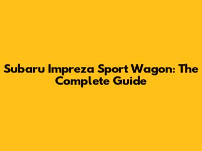 Subaru Impreza Sport Wagon: The Complete Guide