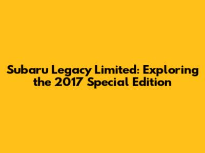 Subaru Legacy Limited: Exploring The 2017 Special Edition
