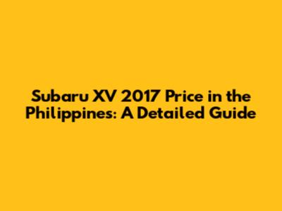 Subaru XV 2017 Price In The Philippines: A Detailed Guide