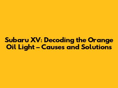 Subaru XV: Orange Oil Light Causes & Solutions