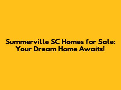 Summerville SC Homes For Sale: Your Dream Home Awaits!