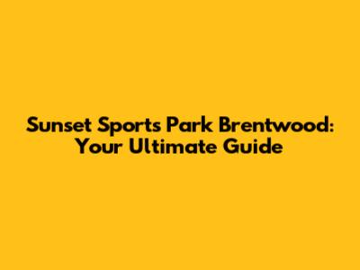 Sunset Sports Park Brentwood: Your Ultimate Guide