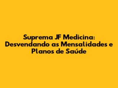 Suprema JF Medicina: Tudo Sobre Mensalidades E Planos