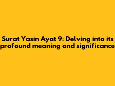 Before we focus specifically on Ayat 9, let's take a moment to appreciate the significance of Surat Yasin as a whole. Surat Yasin is the 36th chapter of the Quran and is considered one of the most important chapters. It is often referred to as the "Heart of the Quran" due to its comprehensive nature and the profound messages it contains. The Surah focuses on key themes such as the Oneness of Allah (Tawhid), the importance of belief in the afterlife, and the consequences of rejecting divine guidance. Reciting Surat Yasin is believed to bring numerous blessings and spiritual benefits to the reciter. Many Muslims make it a habit to read Surat Yasin regularly, especially on Friday evenings or during times of difficulty, seeking solace and guidance from its verses. The Surah also recounts stories of past nations and their interactions with prophets, serving as lessons and reminders for believers to remain steadfast in their faith and obedience to Allah. Furthermore, Surat Yasin emphasizes the importance of reflecting on the signs of Allah's creation, from the natural world to the human body, as evidence of His existence and power. Through its eloquent language and profound meanings, Surat Yasin continues to inspire and uplift Muslims around the world, deepening their connection with Allah and strengthening their faith. Reading Surat Yasin is like receiving a spiritual recharge, filling your heart with peace and hope. The Surah's verses serve as reminders of Allah's mercy and guidance, encouraging believers to remain steadfast in their faith and seek His pleasure in all aspects of life. Overall, Surat Yasin holds a special place in the hearts of Muslims, serving as a source of comfort, inspiration, and spiritual nourishment. Its timeless message resonates with believers across generations, reminding them of the importance of faith, gratitude, and righteous living. It's no wonder that Surat Yasin is often recited during times of difficulty, as its verses offer solace, guidance, and hope for a better future. The Surah's profound teachings continue to inspire and uplift Muslims around the world, deepening their connection with Allah and strengthening their commitment to His path.