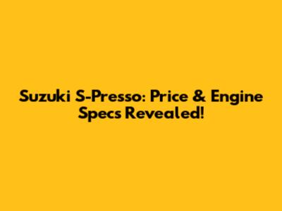 Suzuki S-Presso: Price & Engine Specs Revealed!