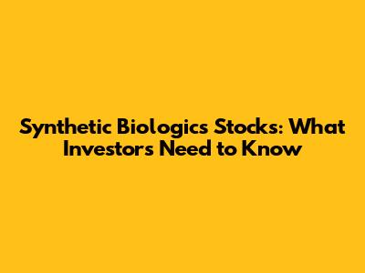 Hey guys! Let's dive into the exciting world of synthetic biologics stocks. If you're looking to understand the financial side of this innovative field, you're in the right place. We'll break down everything you need to know, from what synthetic biologics are to the factors influencing their stock prices. Buckle up, because we're about to explore the ins and outs of this dynamic market.