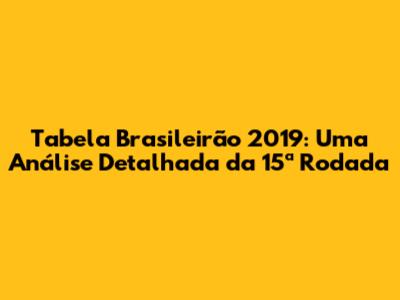 Tabela Brasileirão 2019: Análise Da 15ª Rodada