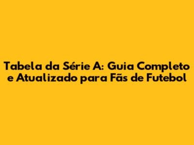 O Que é a Tabela da Série A e Por Que Ela Importa?