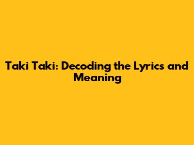 Taki Taki: Decoding The Lyrics And Meaning