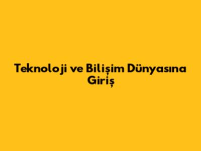 Teknoloji Ve Bilişim Dünyasına Giriş