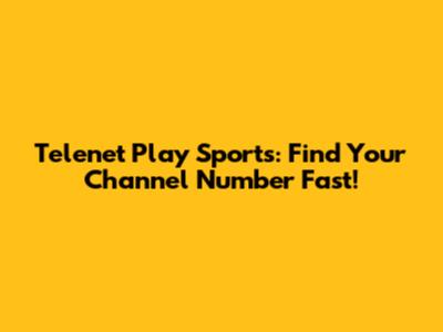 Telenet Play Sports: Find Your Channel Number Fast!