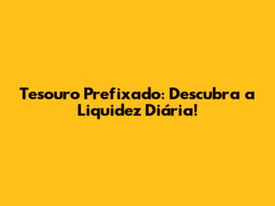 Tesouro Prefixado: Descubra A Liquidez Diária!