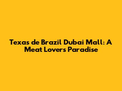 Texas De Brazil Dubai Mall: Menu & Dining Experience