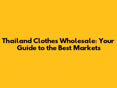 Top Thailand Clothes Wholesale Markets