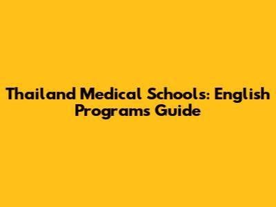 Thailand Medical Schools: English Programs Guide