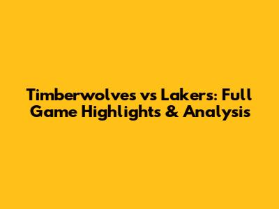 Timberwolves Vs Lakers: Full Game Highlights & Analysis