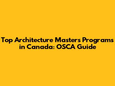 Top Architecture Master's Programs In Canada: OSCA Guide