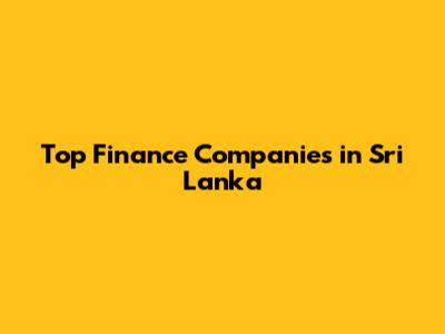 Top Finance Companies In Sri Lanka
