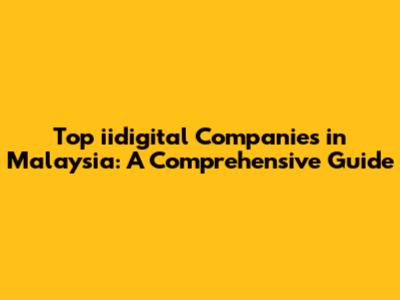 Top Iidigital Companies In Malaysia: A Comprehensive Guide