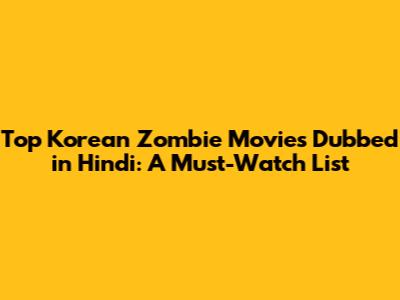 Top Korean Zombie Movies Dubbed in Hindi