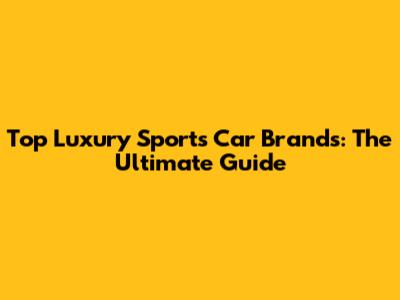 Top Luxury Sports Car Brands: The Ultimate Guide