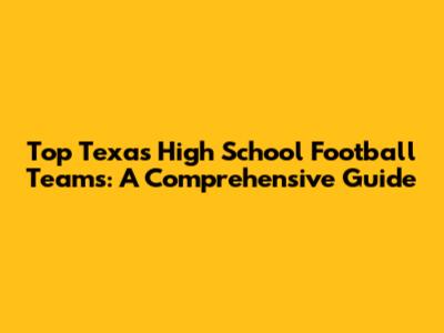 Top Texas High School Football Teams: A Comprehensive Guide