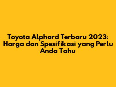 Hey guys! Siapa yang lagi ngincer mobil MPV mewah? Pasti udah nggak asing lagi dong sama Toyota Alphard. Mobil ini emang ikonik banget buat keluarga yang pengen kenyamanan dan kemewahan ekstra. Nah, di tahun 2023 ini, Toyota Alphard hadir dengan berbagai pembaruan yang bikin makin ngiler. Tapi, sebelum memutuskan untuk meminangnya, yuk kita bedah dulu harga terbaru dan spesifikasi lengkapnya!