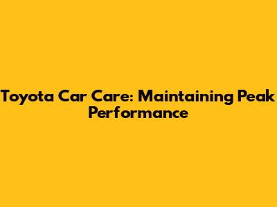 Toyota Car Care: Tips For Optimal Performance
