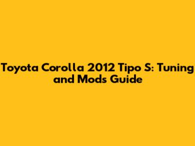 Toyota Corolla 2012 Tipo S: Tuning And Mods Guide