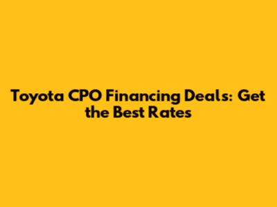 Hey everyone! So, you're thinking about diving into the world of Certified Pre-Owned (CPO) Toyotas? Awesome choice, guys! CPO vehicles offer that sweet spot between new car peace of mind and used car affordability. And when it comes to financing these gems, you'll want to make sure you're snagging the best possible deals. That's where Toyota CPO financing deals come into play. These special offers can seriously slash the cost of your ownership, making that dream Toyota even more attainable. We're talking about lower interest rates, sometimes even 0% APR for qualified buyers, and potentially longer financing terms that can lower your monthly payments. It's like getting a little thank you from Toyota for choosing one of their meticulously inspected and reconditioned CPO vehicles. But hey, these deals don't just fall into your lap, right? You gotta know where to look and what to expect. This article is your go-to guide to understanding and maximizing Toyota CPO financing. We’ll break down what makes CPO vehicles so special, explore the types of financing deals available, and give you the lowdown on how to get approved for the best rates. So, buckle up, and let's get you rolling in a fantastic CPO Toyota without breaking the bank!