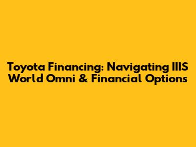 Toyota Financing: Navigating IIIS World Omni & Financial Options