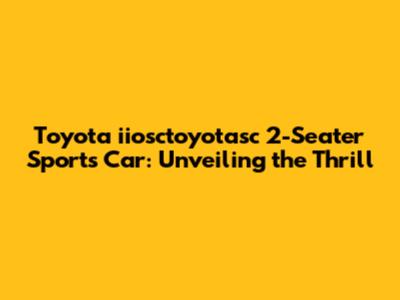 Toyota Iiosctoyotasc 2-Seater Sports Car: A Comprehensive Guide