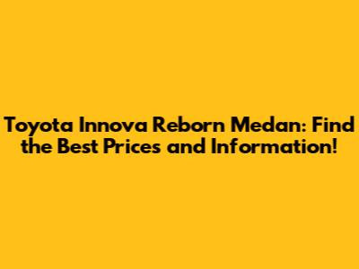 Toyota Innova Reborn Medan: Prices & Info!