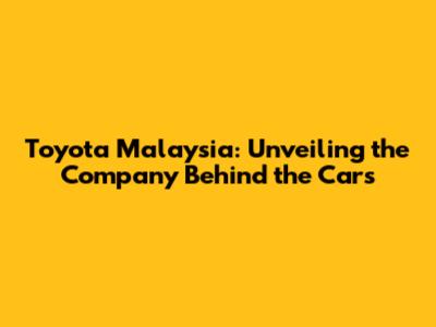 Toyota Malaysia: Unveiling The Company Behind The Cars