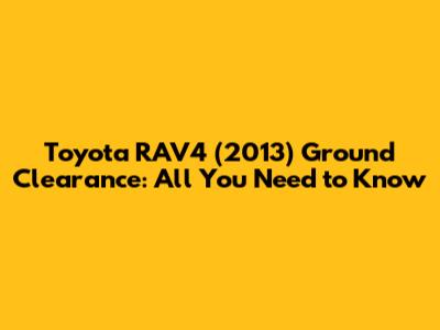 Toyota RAV4 (2013) Ground Clearance: All You Need To Know
