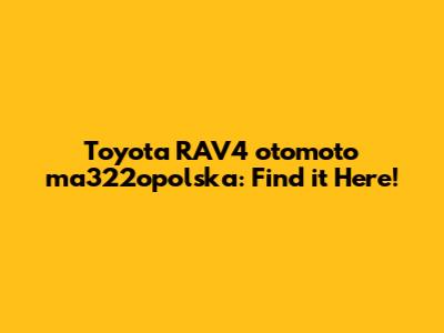 Toyota RAV4 Otomoto Ma322opolska: Find It Here!
