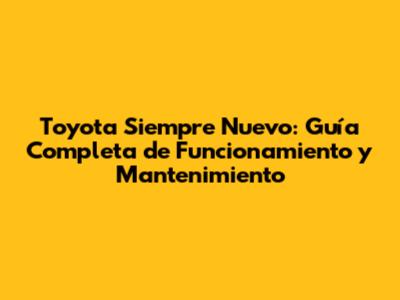 Toyota Siempre Nuevo: Guía Completa De Funcionamiento Y Mantenimiento