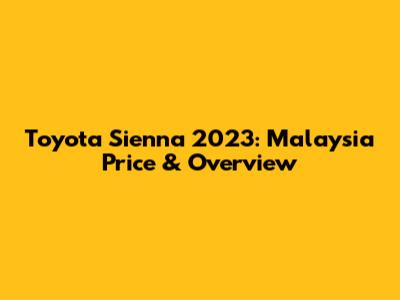 Hey guys! Let's dive into everything you need to know about the Toyota Sienna 2023 in Malaysia, focusing on the price, specs, and overall value. If you're in the market for a new family car, especially a minivan, the Sienna is definitely one to watch. We'll break down the different aspects to help you make an informed decision. So, buckle up and let's get started!