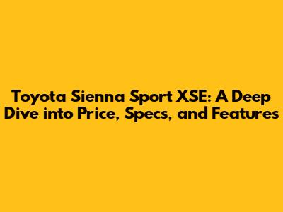 Hey guys! Let's dive deep into the Toyota Sienna Sport XSE, a minivan that’s turning heads with its sporty design and impressive features. If you're in the market for a family-friendly vehicle that doesn't compromise on style and performance, the Sienna XSE might just be your perfect match. We’re going to cover everything from its price point to its standout specs, color options, and the cool features that make it a top contender in the minivan segment.