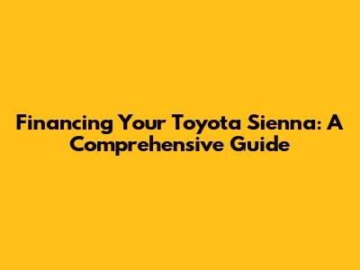 Financing a Toyota Sienna doesn't have to be a daunting task. By understanding your options, knowing your financial situation, and following these tips, you can secure a great financing deal and drive off in the minivan of your dreams. Remember to take your time, do your research, and don't be afraid to negotiate. Happy driving, guys!