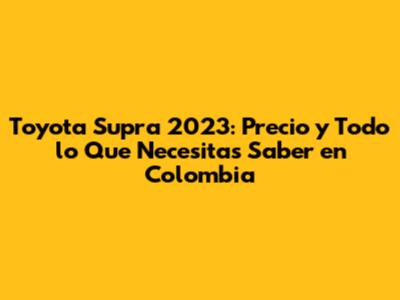 Ahora que están emocionados por tener un Toyota Supra 2023, la siguiente pregunta es: ¿dónde lo compro? La respuesta es simple: en los concesionarios oficiales de Toyota en Colombia. Estos concesionarios son los únicos que pueden garantizar la autenticidad del vehÃculo, ofrecer servicios de garantÃa y proporcionar un excelente servicio postventa. Pueden encontrar concesionarios Toyota en las principales ciudades de Colombia, como Bogotá, MedellÃn, Cali, Barranquilla, y otras ciudades importantes. Para encontrar el concesionario más cercano, les recomiendo visitar la página web oficial de Toyota Colombia. AllÃ, podrán encontrar un directorio de concesionarios con sus datos de contacto y ubicaciones. Al visitar un concesionario, podrán ver el Toyota Supra 2023 en persona, hablar con un asesor de ventas, hacer una prueba de manejo y obtener información detallada sobre los precios y las opciones de financiamiento. Es importante que se pongan en contacto con varios concesionarios para comparar precios y servicios. Cada concesionario puede ofrecer diferentes ofertas y promociones, por lo que es importante que investiguen a fondo. Además, los concesionarios suelen tener diferentes opciones de financiamiento, lo cual les puede ayudar a hacer su sueño realidad. Algunos concesionarios también ofrecen servicios de personalización, donde pueden elegir entre diferentes colores, acabados y accesorios para personalizar su Supra. Antes de tomar una decisión, asegúrense de leer las opiniones de otros clientes y de investigar la reputación del concesionario. Esto les ayudará a asegurarse de que están tratando con un concesionario confiable y de buena reputación. En resumen, comprar el Toyota Supra 2023 en un concesionario oficial de Toyota en Colombia es la mejor manera de asegurar una compra segura y satisfactoria. No duden en visitar varios concesionarios, comparar precios y servicios, y hacer todas las preguntas que necesiten. ¡Asà estarán un paso más cerca de disfrutar de la emoción de conducir un Supra!