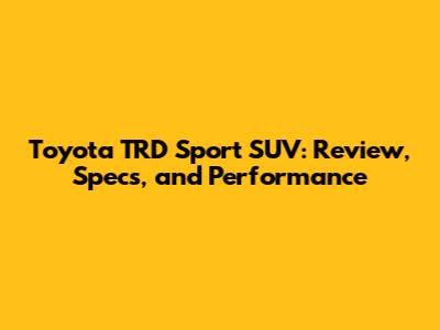 Toyota TRD Sport SUV: Review, Specs, And Performance