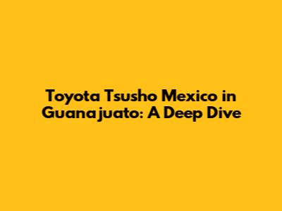 Hey there, everyone! Ever wondered about Toyota Tsusho Mexico and their operations in Guanajuato? Well, buckle up, because we're about to dive deep into everything you need to know. From their core business activities to their impact on the local economy, we'll cover it all. So, grab your favorite beverage, get comfy, and let's explore this fascinating topic together! Toyota Tsusho Corporation, a key player in the Toyota Group, has a significant presence in Mexico, particularly in the state of Guanajuato. But what exactly do they do there, and why is it so important? Let's find out, shall we?
