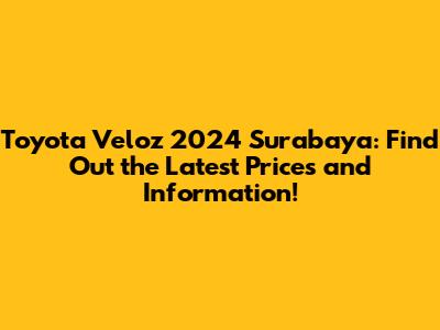 Hey guys! Are you curious about the Toyota Veloz 2024 prices in Surabaya? Well, you've come to the right place! In this article, we're going to dive deep into everything you need to know about the Toyota Veloz 2024, specifically focusing on its availability, specifications, and, of course, the price range in the Surabaya area. So, buckle up and let's get started!