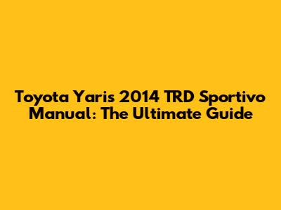 Toyota Yaris 2014 TRD Sportivo Manual: A Comprehensive Guide