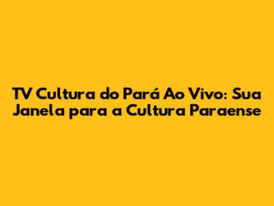 Se você busca TV Cultura do Pará ao vivo para se manter informado, entretido e conectado com a cultura paraense, não perca tempo! Sintonize a TV Cultura do Pará e mergulhe em um universo de programas incríveis, notícias relevantes e eventos emocionantes. Seja pela TV, pela internet ou por dispositivos móveis, a TV Cultura do Pará está sempre ao seu alcance. A TV Cultura do Pará ao vivo oferece uma programação diversificada e de qualidade, que atende a todos os gostos e idades. Assista aos telejornais para se manter atualizado sobre os acontecimentos do estado, do Brasil e do mundo. Descubra a riqueza da cultura paraense com os programas culturais e de variedades. Aprenda e se inspire com os programas educativos e informativos. Apoie os artistas locais e fortaleça a cena cultural do Pará. A TV Cultura do Pará é mais do que uma emissora de televisão, é uma janela para a cultura, a informação e o entretenimento. Não perca a oportunidade de fazer parte dessa grande família que é a TV Cultura do Pará. Sintonize agora mesmo e aproveite tudo o que a emissora tem a oferecer!